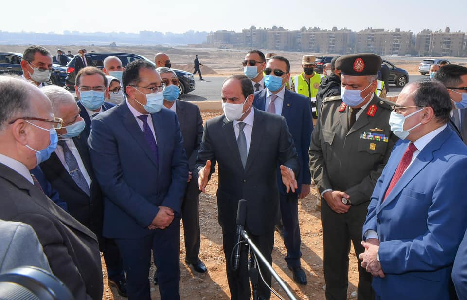 وقد رافق الرئيس خلال الجولة التفقدية كل من : رئيس مجلس الوزراء، والدكتور محمد شاكر وزير الكهرباء والطاقة المتجددة، والمهندس طارق الملا وزير البترول والثروة المعدنية، والدكتور محمد عبد العاطي وزير الموارد المائية والري، والدكتور طارق شوقي وزير التربية والتعليم والتعليم الفني، والدكتورة هالة السعيد وزيرة التخطيط والتنمية الاقتصادية، ومحمود شعراوي وزير التنمية المحلية، والدكتورة هالة زايد وزيرة الصحة والسكان، والدكتور عاصم الجزار وزير الإسكان والمرافق والمجتمعات العمرانية، والسيدة نيفين القباج وزيرة التضامن الاجتماعي، والسيد القصير وزير الزراعة واستصلاح الأراضي، ونيفين جامع وزيرة التجارة والصناعة، واللواء أمير سيد أحمد مستشار رئيس الجمهورية للتخطيط العمراني، واللواء محمد أمين مستشار رئيس الجمهورية للشئون المالية، واللواء أ.ح إيهاب الفار رئيس الهيئة الهندسية للقوات المسلحة.