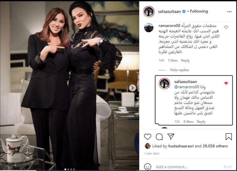 وقالت سلطان، خلال البرنامج، إنها ضد المنظمات التي تدافع عن حقوق المرأة، ولا تجد أي مشكلة في زواج الفتيات القاصرات “تحت سن 18 سنة” إذا كانت لديهن الرغبة في ذلك ولا يتم الزواج تحت ضغط العائلة.