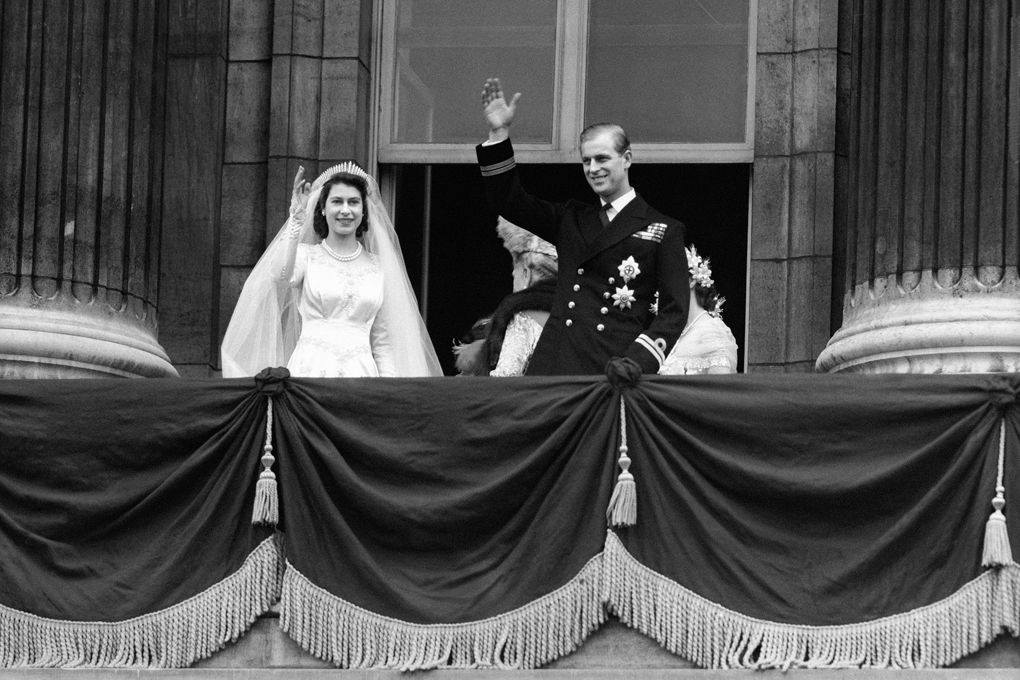 - 20th November 1947: Princess Elizabeth and Prince Philip on the balcony at Buckingham Palace after their wedding. (Photo by Central Press/Getty Images)
