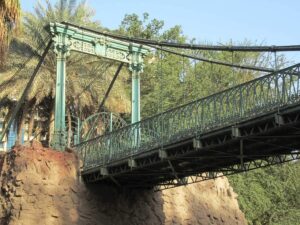 في الجهة المقابلة لجزيرة الشاي يوجد أقدم كوبري معلق في أفريقيا والشرق الأوسط، وهو الكوبري المعدني الأخضر الذي شيده المهندس الفرنسي الشهير حوستاف ايفل مشيد برج إيفل الشهير في باريس.