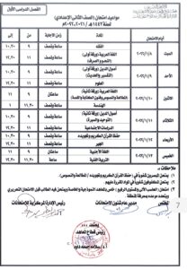 ويوم الثلاثاء 18 يناير مادتى اللغة العربية ورقة ثانية “المطالعة والنصوص وفنون الكتابة” ومادة الهندسة، ويوم الاربعاء 19 يناير مادتى اصول الدين ورقة ثانية ” التوحيد والسيرة ” ومادة الدراسات الاجتماعية.