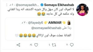 فاجأت الفنانة سمية الخشاب، متابعيها على تويتر بالرد على سؤال أحدهم ؛ عندما سألها عن كيفية تجاوز أزمة طلاقها من الفنان أحمد سعد.