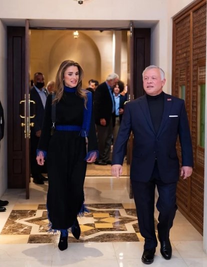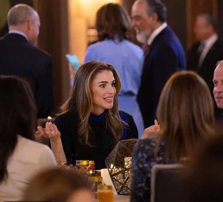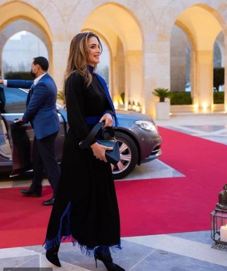 خطفت الملكة رانيا العبدالله الأنظار بإطلالة ساحرة في حفل إفطار للعائلة الهاشمية، وتألقت بإطلالة كلاسيكية أنيقة باللون الأسود. اعتمدت الملكة رانيا على فستان بلمسات رمضانية باللون الأسود زاد من أناقته تداخل اللون الأزرق الذي استخدمته الملكة رانيا لحزام توسط فستانها. نسقت الملكة رانيا إطلالتها مع حذاء باللون الأسود بكعب رفيع عال، وحقيبة يد بنفس اللون، ليغلب اللون الأسود بذلك على إطلالة الملكة رانيا ويمنحها إطلالة ملكية كلاسيكية أنيقة. ونشرت الملكة رانيا العبدالله مجموعة من الصور لإفطار العائلة الهاشمية، وعلقت عليها بكلمات عبرت عن سعادتها بالتجمع العائلي.