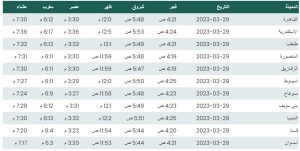 وفيما يلي مواقيت الصلاة اليوم في القاهرة وعدد من محافظات ومدن مصر:
