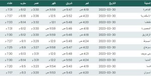 وفيما يلي مواقيت الصلاة اليوم في القاهرة وعدد من محافظات ومدن مصر: