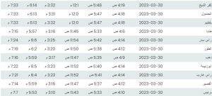 ويمكن معرفة كل مواقيت الصلاة من خلال رابط الهيئة العامة للمساحة عبر الرابط التالي اضغط هنا
