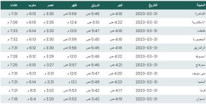 وفيما يلي مواقيت الصلاة اليوم في القاهرة وعدد من محافظات ومدن مصر: