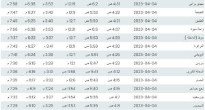 مواقيت الصلاة اليوم