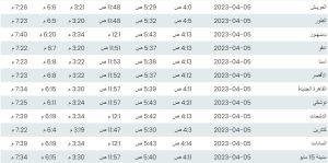 مواقيت الصلاة اليوم