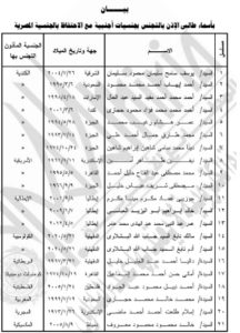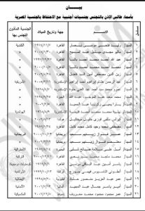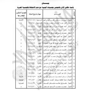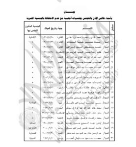 كما نشرت الجريدة قرار برفض طلب محمد عبد الله عطيو الفرا “فلسطيني” اكتسابه الجنسية المصرية تبعًا لوالدته المكتسبه الجنسية المصرية لدواع أمنية، ورفض طلب عماد عليان على عليوة “فلسطيني” اكتسابه الجنسية المصرية تبعًا لوالدته المكتسبه الجنسية المصرية لدواع أمنية.