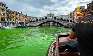 تحوّلت مياه قناة مدينة البندقية بإيطاليا إلى اللون الأخضر الفلوري، ما دفع الشرطة إلى إجراء تحقيق وسط تكهنات بأنّ الواقعة يقف خلفها أشخاص مجهولون.