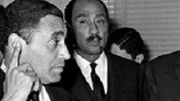 هيكل من اليسار بجانبه هدى عبد الناصر وجمال عبد الناصر في عام 1966