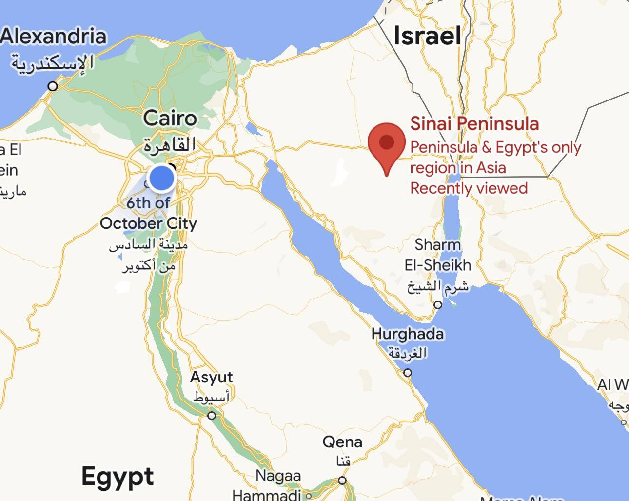 موضحا، أن شبه جزيرة سيناء لا تظهر على الخريطة لأن خرائط Google لا تعرض أسماء المقاطعات بشكل تلقائي عند النظر إلى خريطة الدول بل تظهر فقط في حال البحث عنها.