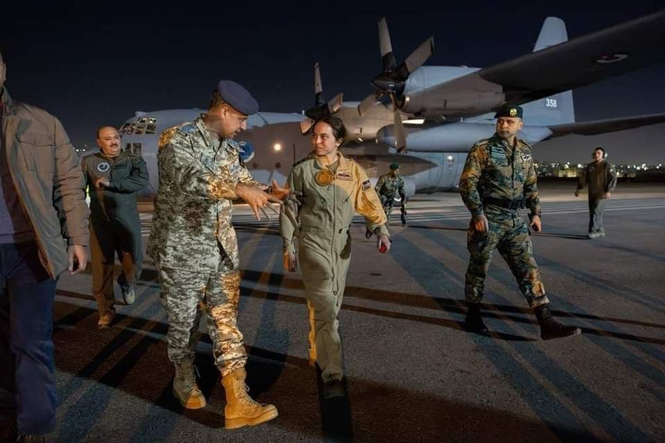 ورافقت طاقم الطائرة، التي سيرت بتوجيهات ملكية سامية، الأميرة سلمى بنت عبدالله الثاني التي تحمل رتبة ملازم أول/طيار في سلاح الجو الملكي.