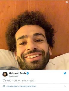وظهر “صلاح” فى الصورة وهو مُبتسم، ومُستلقٍ على السرير، والذى اعتبره الجمهور بأنه تجاهلٌ لأحزان المصريين بسبب الحادث الذى وقع صباح أمس فى محطة مصر، وانهالت التعليقات الرافضة لنشر الصورة في هذا التوقيت العصيب.