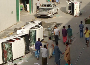 ونشرت وسائل إعلام عربية ونشطاء على مواقع التواصل الاجتماعي، صورا وفيديوهات لاحتجاجات وأعمال شغب اجتاحت قطر، قالوا إنها لعمال بناء ملاعب كأس العالم في قطر.