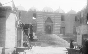 لقطة نادرة من أمام جامع الملكة صفية بشارع محمد علي – حي الدرب الاحمر بالقاهرة سنة 1910 .