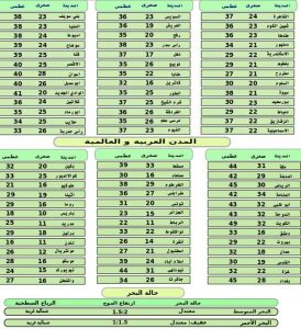 وعن درجات الحرارة المتوقعة جاءت وفقا للجدول التالي: