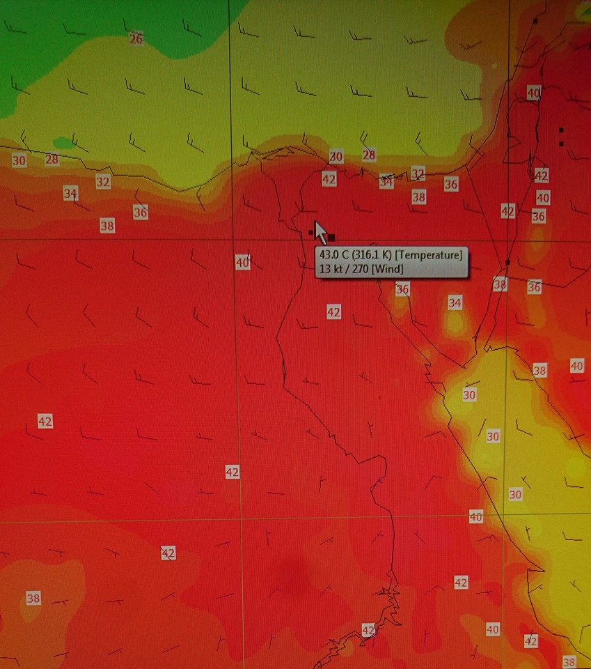 وأضافت الهيئة في بيان أن الموجة الحارة تبلغ ذروتها يوم الاربعاء حيث تصل درجة الحرارة علي القاهرة 42 والصغرى 32 درجة وعلى شمال الصعيد 44 درجة وعلى جنوب الصعيد 45 درجه علي ان تنخفض غربا كما تنخفض الرطوبة النسبية خلال الفترة . واما عن الرياح فتنشط على السواحل الشمالية مثيرة للرمال والأتربة.