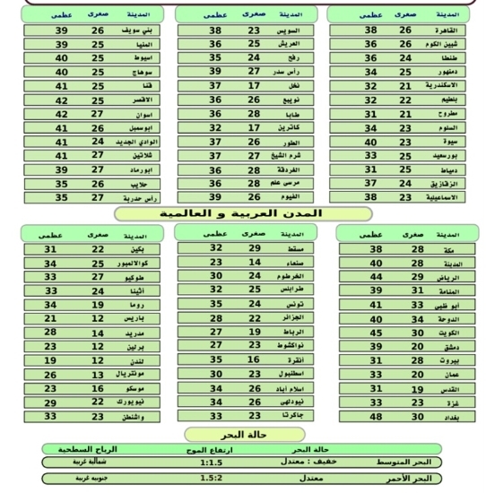 وفيما يلى بيان بدرجات الحرارة غدا: