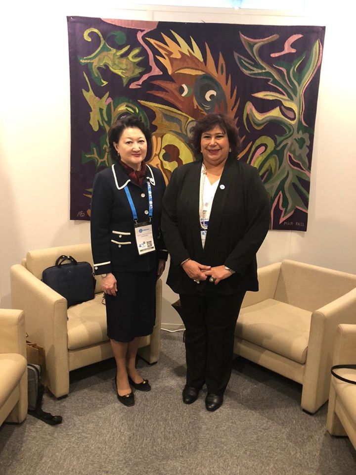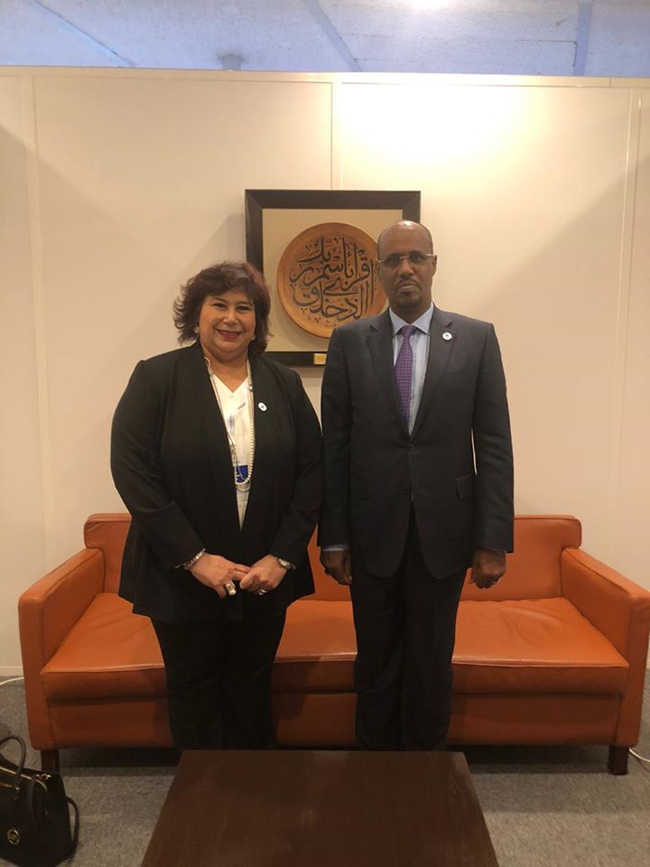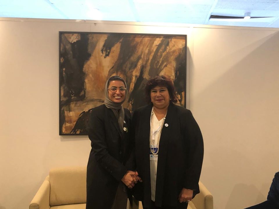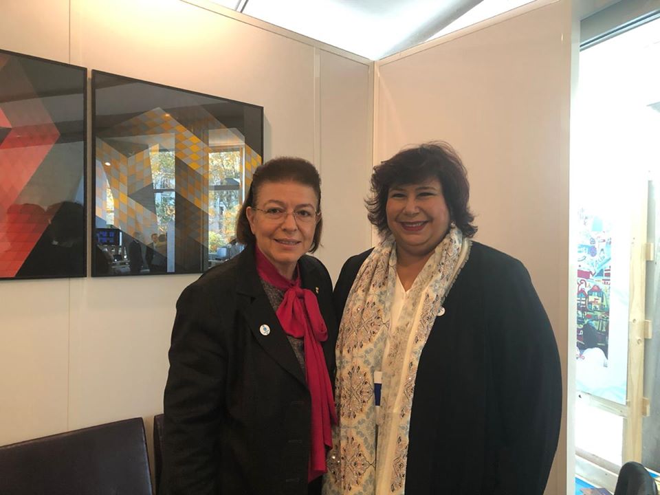 التقت الدكتورة إيناس عبد الدايم وزير الثقافة أثناء مشاركتها فى فعاليات منتدى وزراء الثقافة والذى يأتى فى إطار الدورة 40 للمؤتمر العام لمنظمة الأمم المتحدة للتربية والعلوم والثقافة ( اليونسكو ) بأربعة وزراء ثقافة من اليونان استليانى ميندوتى ، الإماراتية نورة بنت محمد الكعبي ، اكتوتى رايماكلوفا (كازخستان) ومؤمن حسن برى(جيبوتي ) وتناولت اللقاءات بحث سبل دعم التعاون في جميع المجالات الثقافية والفنية والفكرية بين مصر وبلادهم بالإضافة إلى تعزيز الشراكة من خلال مشروعات تبادلية وتكثيف اوجه التعاون في مجالات الفنون وترجمات الكتب ومعرض الفن التشكيلي والكتاب والمسرح والسينما وفنون الأوبرا والطفل بهدف فتح آفاق إبداعية جديدة تعتمد على التعدد والتنوع الثقافي وتسعي إلى تطوير الحوار بين الحضارات المختلفة ، وذلك بحضور السفير إيهاب بدوى سفير مصر بفرنسا ومندوبها الدائم لدى اليونسكو والدكتورة هبة يوسف رئيس قطاع العلاقات الثقافية الخارجية .