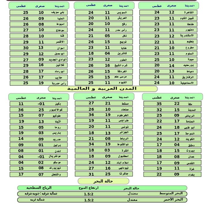 وعن درجات الحرارة المتوقعة غدا فقد جاءت كالتالي: