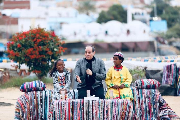 «عسل وفطير».. الرئيس السيسي يتناول وجبة الغداء مع أهالي قرية أبو سهيل بأسوان | صور